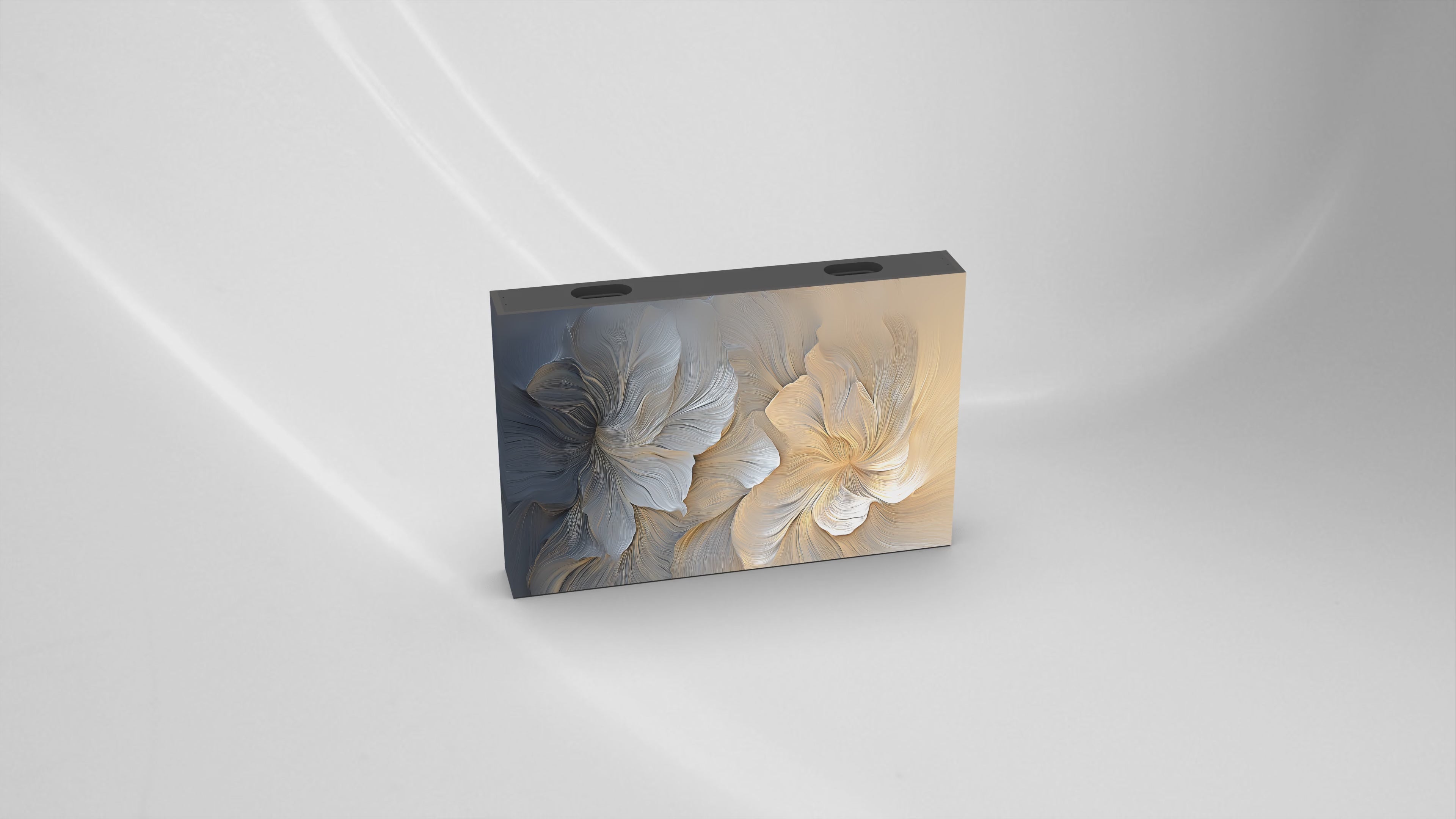 Resoveil is an on-wall acoustic art panel that fuses a 12-speaker system, replaceable artwork, and acoustic treatment in one 600 × 400 × 80 mm frame. Powered by a 9-channel 240 W GaN amplifier and DSP spatial rendering, it delivers immersive, balanced sound while reducing reflections and bass build-up.